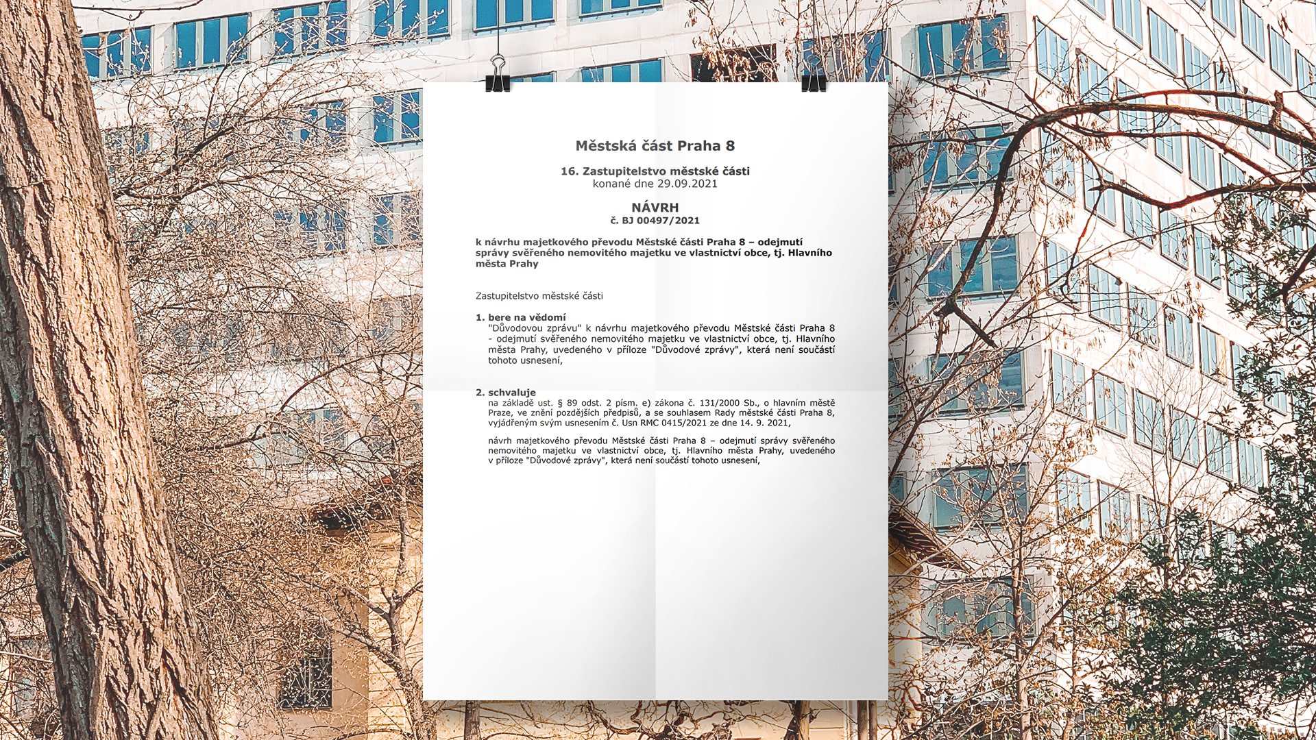 Podtrženo sečteno. Když bude tento bod zastupitelstvem MČ Praha 8 schválen, začne se dávat situace okolo torza budovy opět do pohybu.